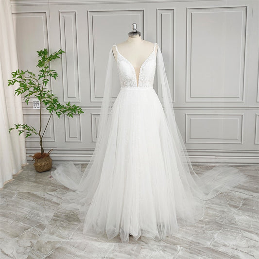 Ethereal A-Line Lace & Chiffon Beach Gown